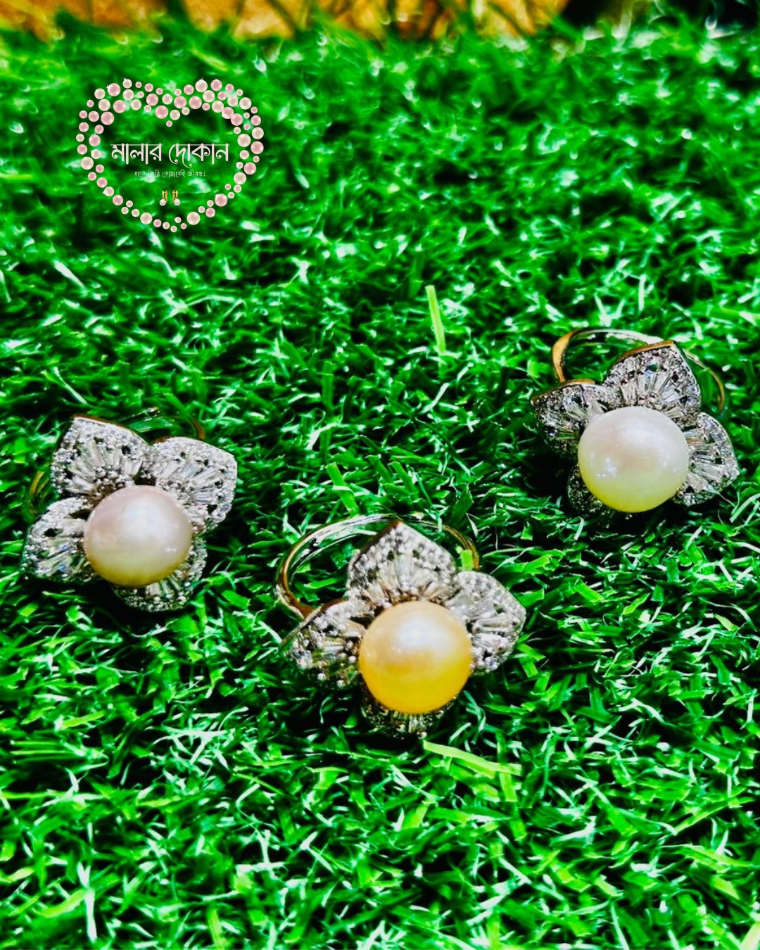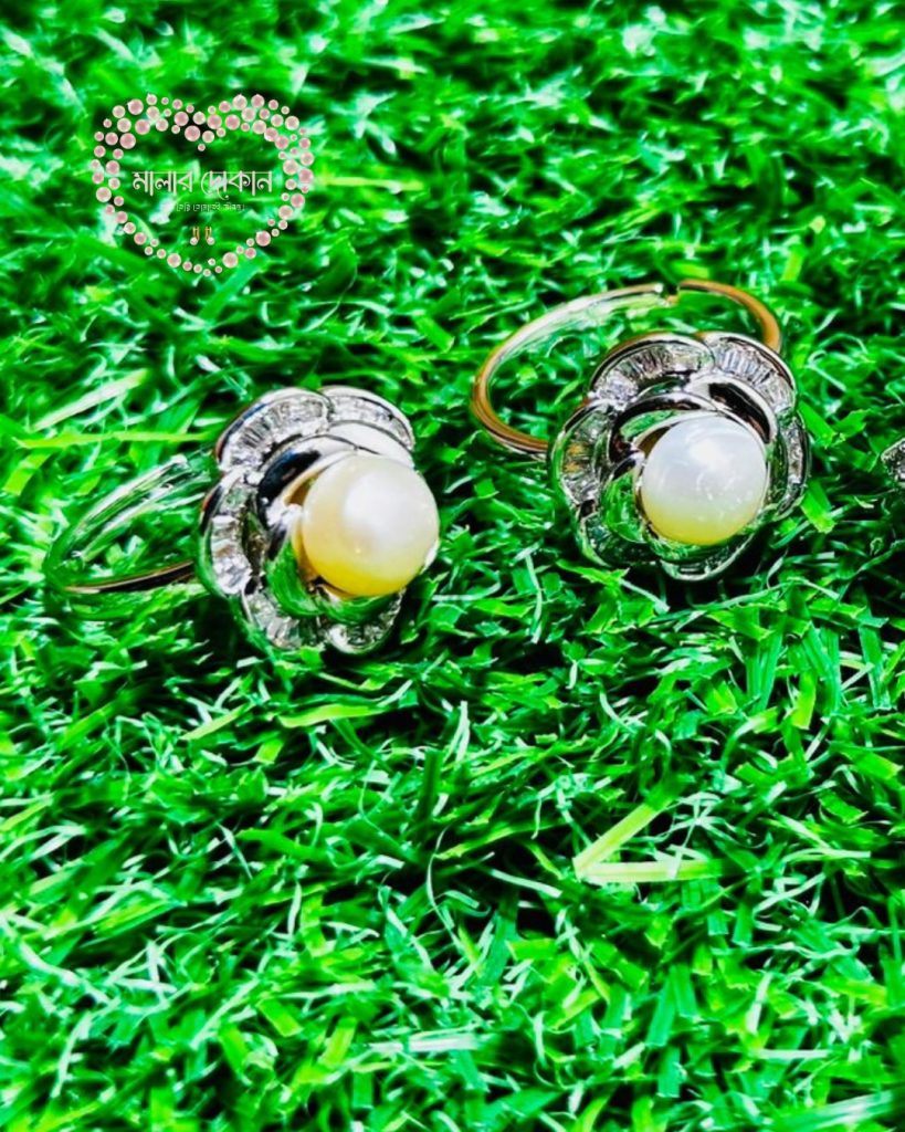 মাদার পার্ল আংটি: প্রাকৃতিক উজ্জ্বল স্তর এই পার্লটি এর অসাধারণ রংধনু আভার (Iridescent glow) জন্য পরিচিত।